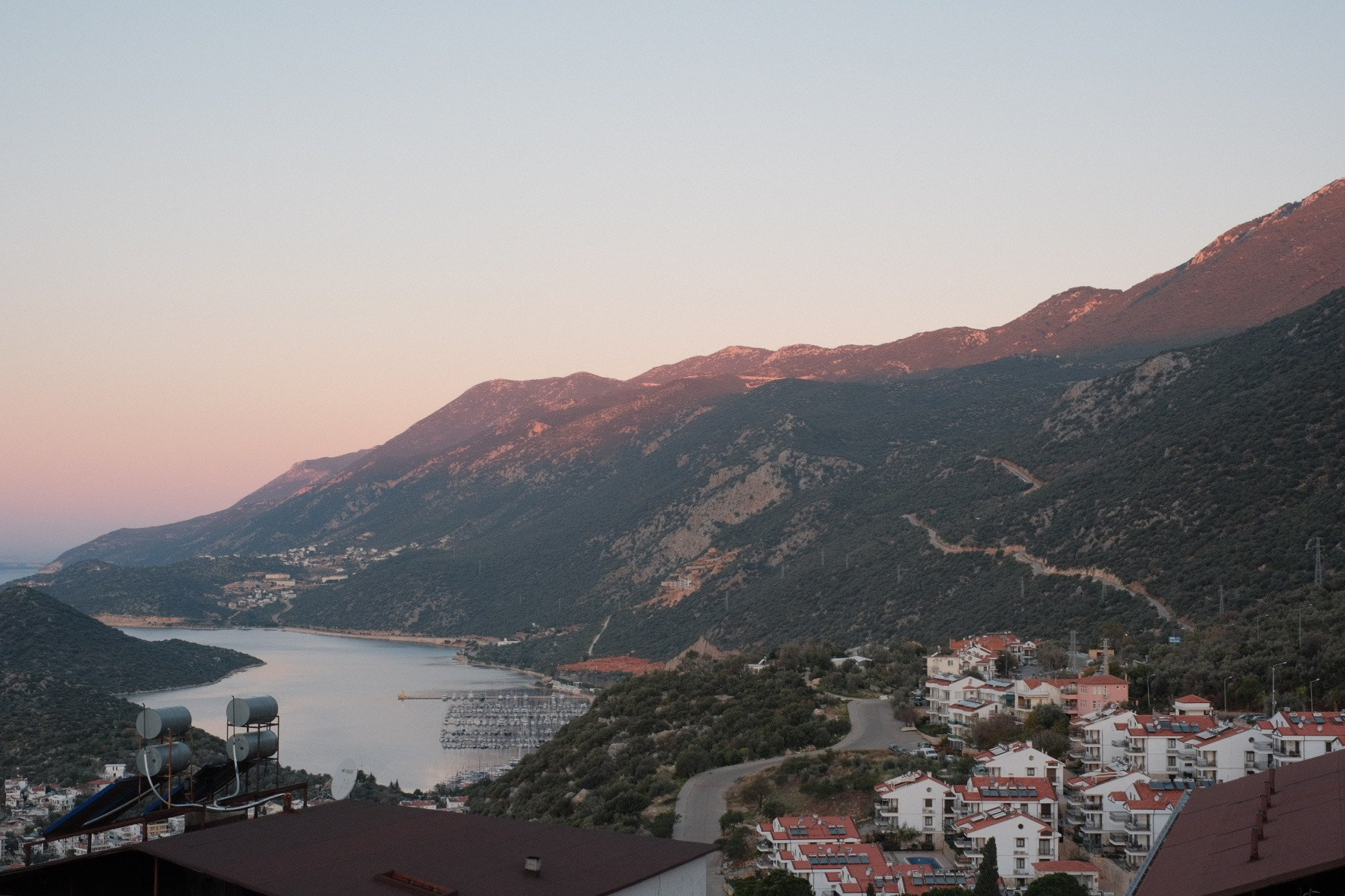 i’ve rented a 2-bedroom apartment with the terrace in Çerçiler – a district located uphill from the kaş downtown. Çerçiler is populated by locals, almost no tourists around. the apartment’s terrace has a magnificent seaview and gets filled by amazing light on sunset, when sun is going down hiding behind the islands in the sea, creating beautiful gradients on the horizon and coloring the water and mountains into yellow-orangish tones.